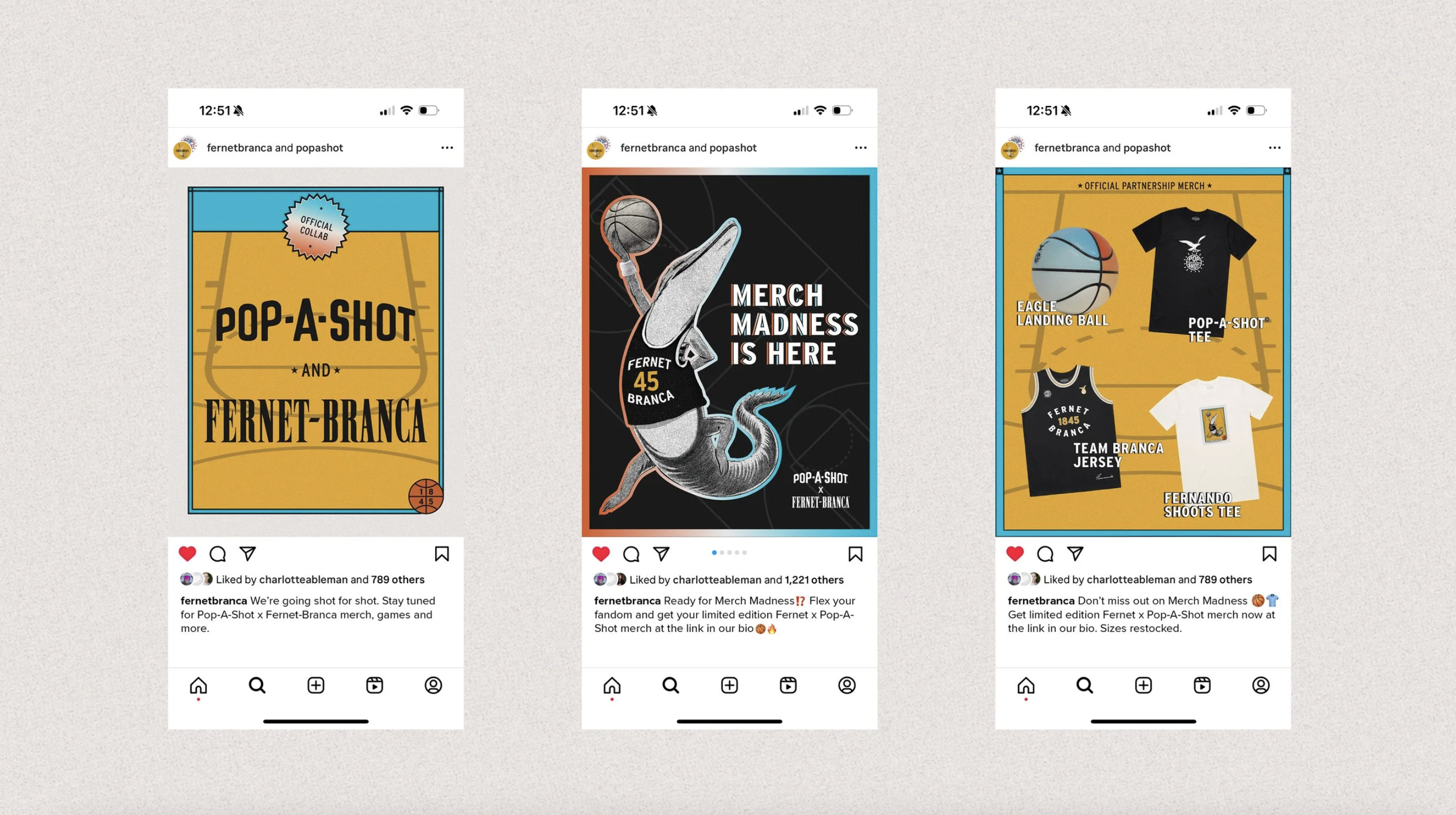 Fernet-Branca and Pop-A-Shot teamed up for March Madness, creating a custom arcade game and a digital “Shot-for-Shot” experience where fans could sink 3s straight into shots of Fernet. Both on-premise players and at-home fans got in on the action. A limited merch drop let people rep the duo all year long.